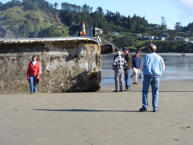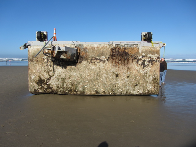 to take a look at the big piece of concrete dock from Japan…the first of the tsunami debris to arrive in Oregon…washed up near Agate Beach just a short drive south of our little beach house…