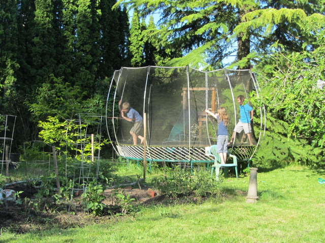 and at weekend’s end a neighborhood picnic in honor of Rick’s 50th birthday where everybody was in a hopeful celebratory mood for Rick and for SUMMER! Plus trampolines…