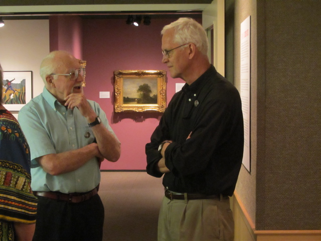 Yesterday was “Bloomsday” when all over the world (but most especially in Dublin) devotees of James Joyce celebrate the master. Salem probably was never one of the hot beds of celebration historically, but when combined with the opening of Rex Amos’ show of collage, chine colle and ephemera at the Hallie Ford Museum of Art, a celebration was inevitable.