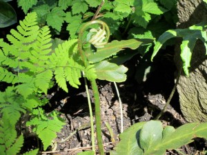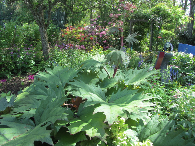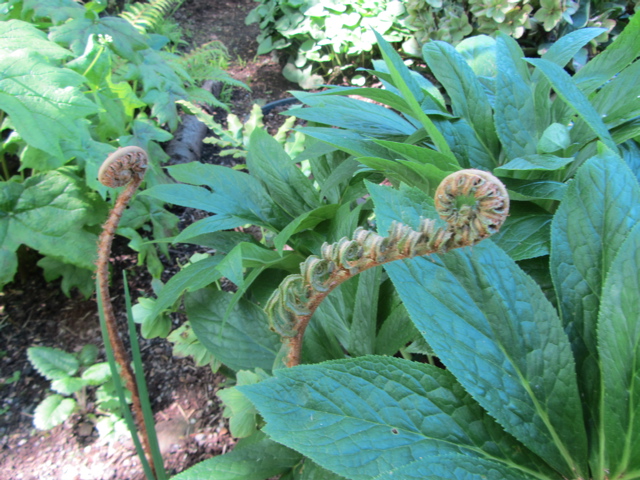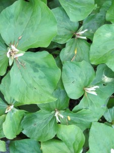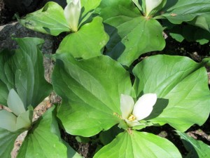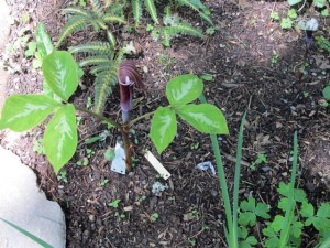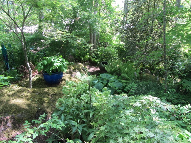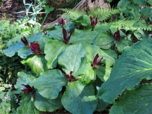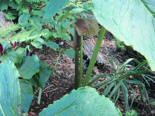 Went up to see Dick and Dee’s garden recently (before the Alaska trip) while the trilliums were still in bloom. Theirs is really an early spring garden and we missed the real season, but “as advertised” there were trilliums…PLUS…jack in the pulpits, things with tiny leaves and things with giant leaves…take a stroll…Dick and Dee built their house on a steeply sloped lot and the garden that came after the house is on various levels. It is a “native plant” garden and a shade garden.