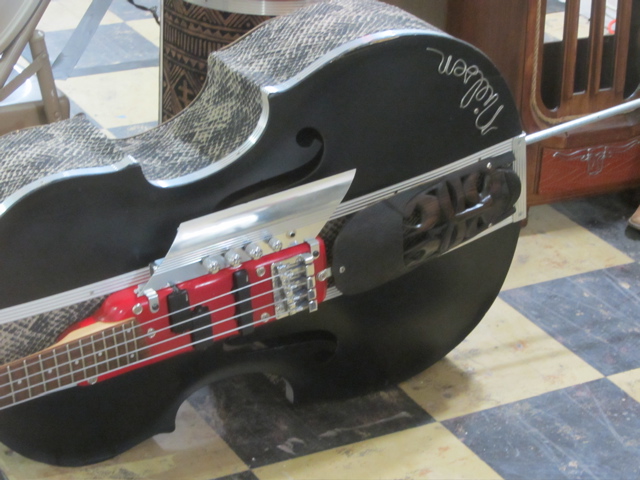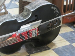 Ann Kresge and Rosemary Cohen have more realized “exhibits” (which I forgot to photograph due to conversation with Niels Nielsen about his interesting “instruments” which include this one that started life as a cello but is now an electric bass…)