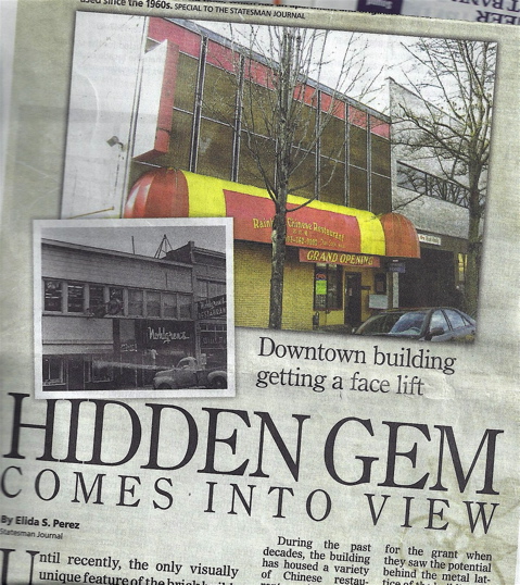 and before I could tell you about it, the paper wrote it up…(thereby saving me having to do the research and providing both an historic photo from the 40″s and a photo of the 1960’s false front…okay, I’m weakening on the paper…)