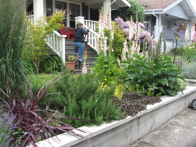 (…the garden flowing over the Zach-made concrete wall…)