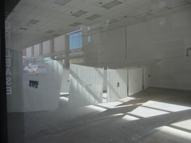 The “tag line” for our show is “DRAW SORT CUT SEW WASH DRY MEND FOLD REPEAT” and we have lots of clothes line and clothes pins…I think you can expect a little bit of resonance with Andries Fourie’s beautiful installation (silk screen on sheeting) down at Project Space 2…165 Ferry Street SE…think it will be open Friday night between 5 and 9 (but I’ll already be in California so I won’t see you…). You can get a view through the window if you are out and about this week. Go see…it’s a wonderful space.