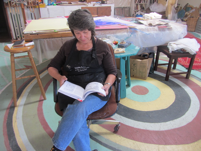 so I turned to work on paper and managed to come up with 18 items in a few days…ALL made on the wonderful paper made by Anne and Dietmar at Lost Coast. They use old clothes, shredded money (that is…money taken out of circulation and shredded by the bank), pampas grass (a non-native invasive plant) and many other things they include in the fibers when they make paper. I found the paper sensational to work on and came home with a suitcase full…soon they will have online sales.