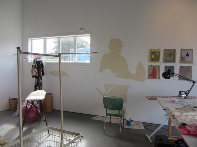It all began when Carolyn thought we might want to collaborate on an installation in her “home” gallery Lost Coast Culture Machine, in Fort Bragg, California. She then admitted a deep-seated need to iron in public, and “Art Laundry” was born…with the support of gallery owners Anne Beck and Dietmar Krumrey.