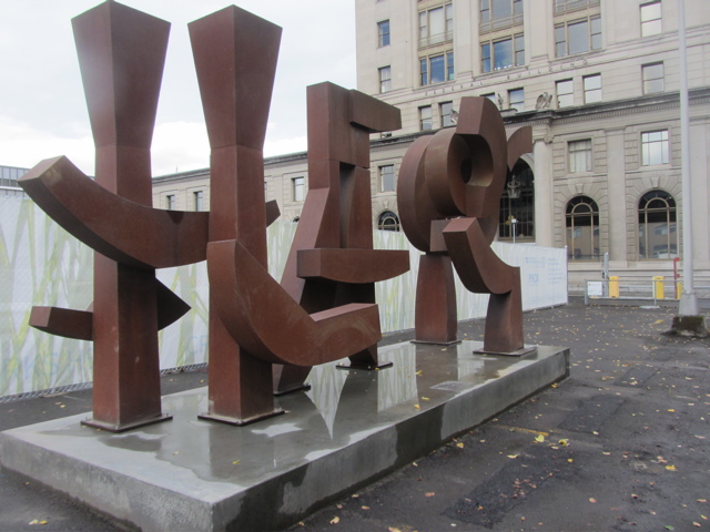 Then we took in the newly placed and dedicated sculpture by Lee Kally near the “new” PNCA building…dedicated Friday morning…a handsome corten steel piece from 1999 called “Memory”…