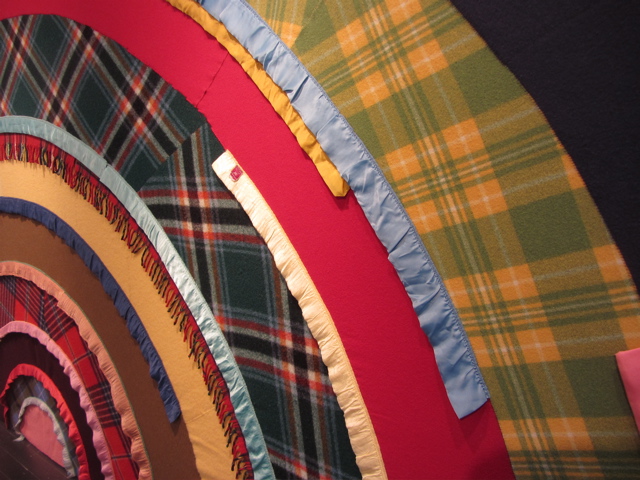 PDX Gallery (9th and Flanders) is featuring a very nice Marie Watt show this month (and there’s still time to get there!). Marie, formerly of Portland and now in Brooklyn, works a lot with blankets as you may remember from earlier this year when a bunch of us sewed bindings on a ton (almost literally)of blankets for her show at the Hallie Ford Museum of art. I bonded with her work I think, so it was fun to see the new work…