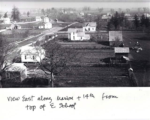 East School was fairly tall and many photos were taken from the top…here’s a view looking south with Center street in the immediate foreground and Chemeketa Street in the middle. The building to the far right is the old state capitol building before the dome was placed on top…