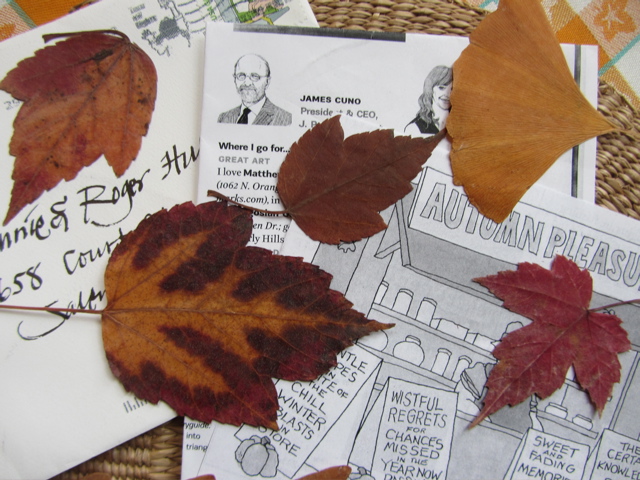 After 5 days at the wet coast–which is fine since I’ll choose cozy every time–I can’t tell you what a treat it was to catch up “On The Way”. Not surprisingly, I had forgotten about my autumn envelope and was pleased to see that the leaves survived USPS machines so well. And since the sun was coming out as I drove home yesterday (VanDuzer was golden!) perhaps your time at the coast will be drier.