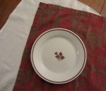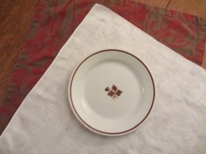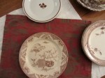 I was conflicted at first…dish-wise…should it be the tea leaf on white or on red table cloths?  The brown & white on red or on white??