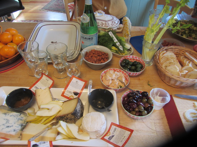Being thankful is even more to the point on the day AFTER Thanksgiving, when one’s loved ones have departed leaving a warm glow…and a fridge full of delectables.  I can say this year it was underscored for me that my family is funny, good-looking, interesting and lively.  All were willing to try something different this year so we had Pumpkin mole soup (Zach & Ashton…and thanks Barbara for the recipe), kale salad (me) brussel sprouts (Marie,) cornbread stuffiing(Cheryl) 3 pies (Ashton) and a tart (me) and a gorgeous 7 pound coho salmon from Nehalem Bay (which my brother reminded us was an endangered species…eek).  Gabrielle zoomed in from New York City bringing cheese from Murray’s Cheese Shop, chocolates from Jacques Torres, and a bottle of scotch for a certain birthday guy….