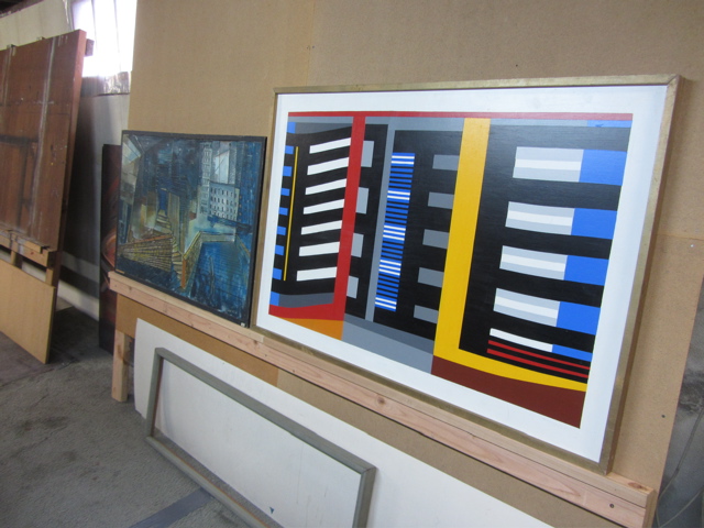 Portland painter Leonard Ruder died a few years ago after a long and productive life as a painter.  He was born in 1917 in Detroit, Michigan, and studied art at The Cranbrook Academy there.  He came west in the 1950’s with his artist friend Hank Kowert to study more, to paint, and to begin his adult life of art, work and family.  The basement studio where he painted for years is still intact, and his children are doing an amazing job of organizing and placing his work.  Take a look…