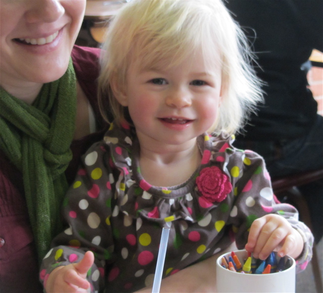 That’s really what this week is about…starting to walk, and building stamina…but in the most fun possible way.  Today’s “work” began with a sunny-day breakfast with some artist friends, including Violet, who got right to work with crayons…