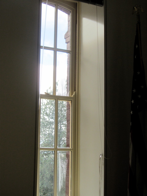 In 1975 our state mandated that 1% of the cost of every new building (or major rehab) be spent on art for that building.  This results in two very good things: #1 it assures quality art contemporary to each building to enhance the building itself and #2 it builds a strong collection, long term, for the State of Oregon.  For each building project a different panel is assembled including architects, building users and members of the art community.  I was on the panel for the State Lands Building some years ago and R has been on several such panels (most recently the ODOT rehab).  It isn’t exactly FUN (sorry Meagan), but it IS interesting…often in unexpected ways.  Currently I’ve agreed to serve on the committee for the new construction of a mental health facility in Junction City, and the first meting was this week.  The meeting room is in the old (but newly rehabbed) State Hospital on Center Street.  Much of this building was torn down alas, but this meeting room was in a section of the building that was saved.