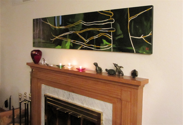 and then for a night cap at Mike and Gretchen’s where I got to visit “my” (it’s theirs now…) painting, which looks good over the fireplace…