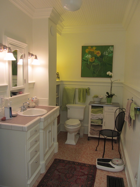 I suspect the subject of our bathroom is a bit boring to you readers by now, but just to complete the thought…here is the process (a very short, digested version I might add…). It fascinates me to watch a room be ripped apart (so naturally I think it fascinates YOU…?) and then come together so beautifully. All of our thanks go to Scott Smith at Cascade Peaks Construction, to Becky of Metzler Tile, to Vince the MASTERFUL tile guy, to Pint Size Plumbing, to Ace of Shades painters…for making this beautiful room that makes us feel each morning like we’re in an Italian hotel!
