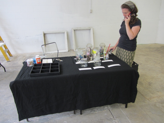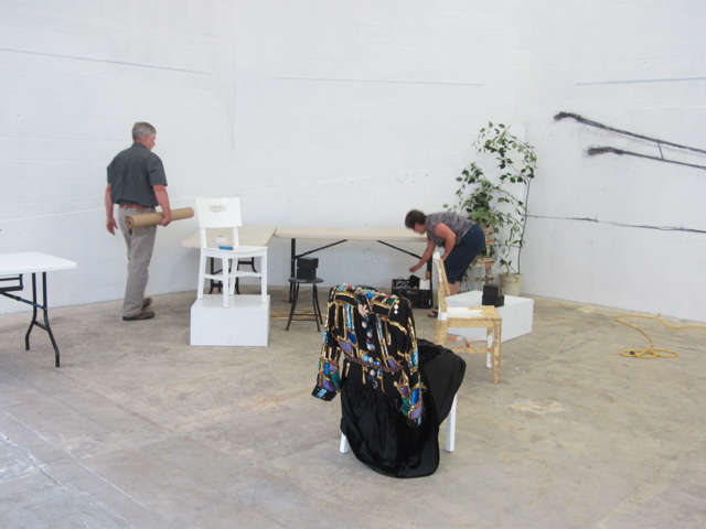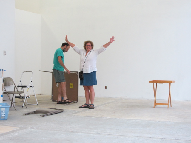 but slowly the artists began to arrive and set up…Ann Kresge (here with technician Mike Nord):