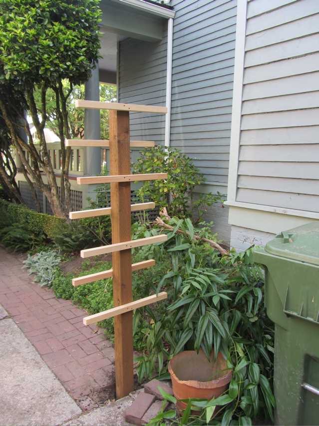 so Bill came and fixed up a trellis for it…because we are now STRICTLY adhering to this rule…NO plants on the architecture (thanks Howard).