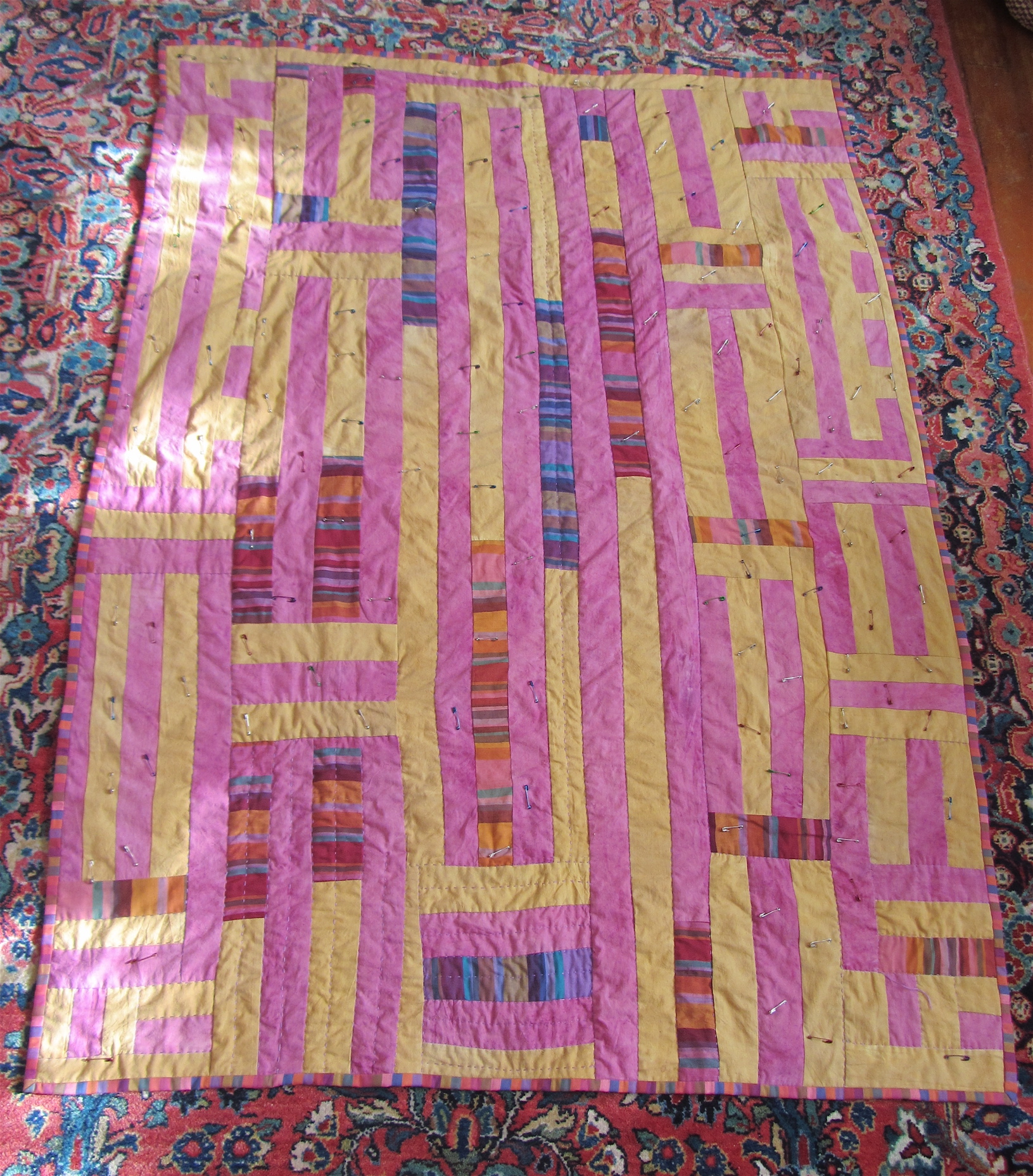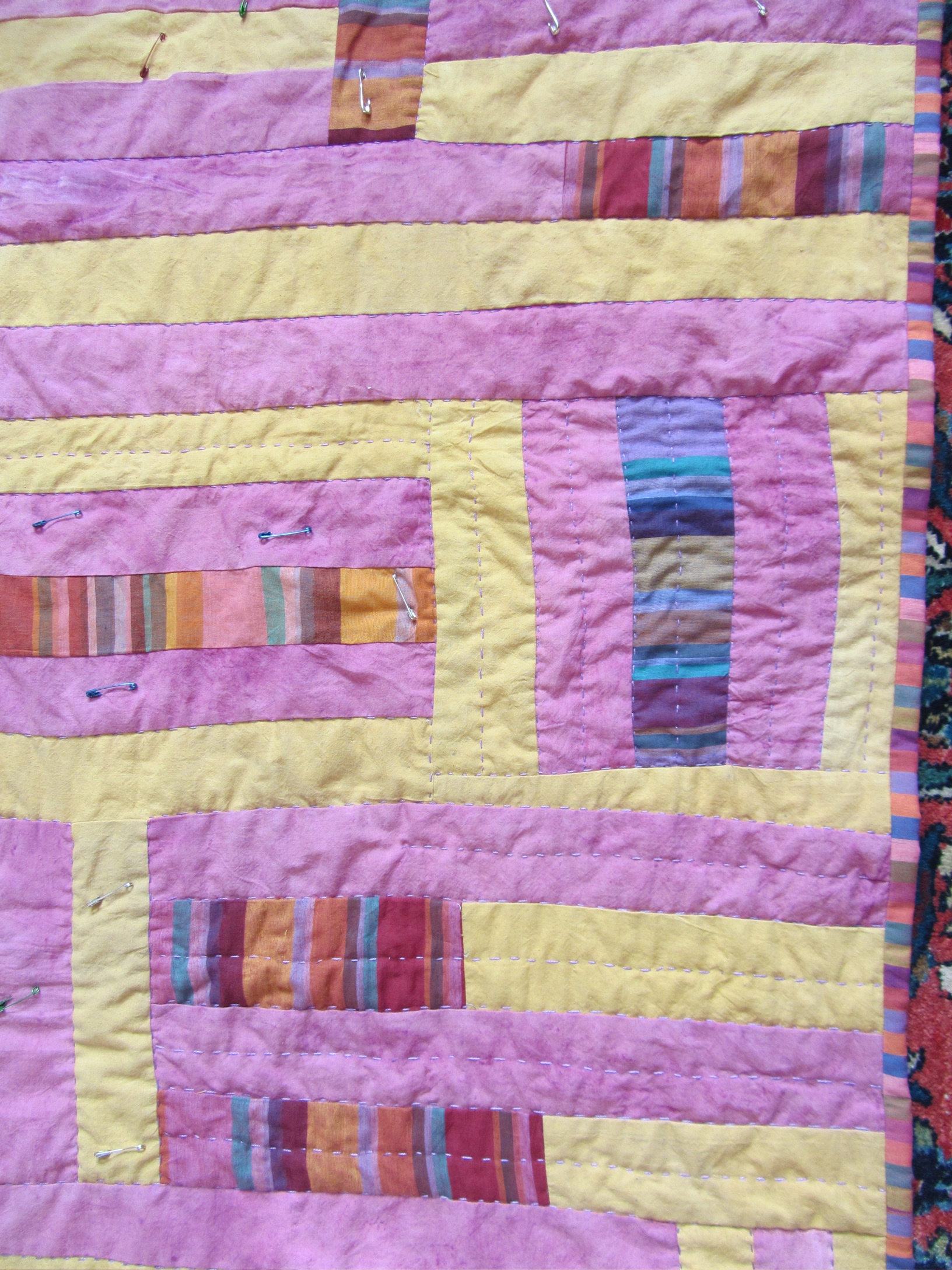 SO we’re going on a little jaunt to see Auntie Pat this week, and I’m taking a quilt to work on. I put the binding on early because it’s easier to travel with it that way…still lots of work to go…