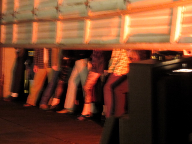 and then there was pounding and banging on the garage doors…which slowly open…revealing…the cast! Fun.