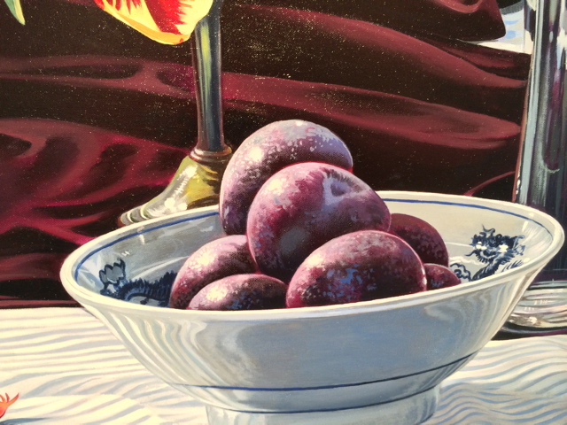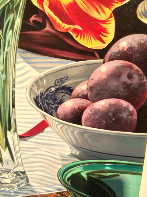 and Friday last we took off for Portland and a whirlwind of activity… which began by a look at Laura Russo Gallery where Sherrie Wolf and Tom Cramer are showing…up until November 2nd. Sherrie Wolf paints VERY realistic still life paintings that are well loved by the Portland audience and FULL of stuff…and while I was looking I noted the same bowl in several paintings…which is nice. Almost a narrative…