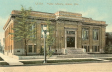 Our Salem Carnegie Library was built under the original auspices of the Salem Woman’s Club, who had been running a public library in the east end of the council chambers since 1904. They bought the lot at State and Winter for $5,500, money the women raised (they actually raised $6,000 and used the additional $500 for paving, curbs, and sewer.) The woman were determined and tireless in their campaign for a Salem library…none more so than Mrs. A.N.Bush who went to New York to call on the members of the Carnegie Foundation to convince them that Salem needed a $30,000 library. The campaign was successful and the doors opened to the public September 14, 1912.