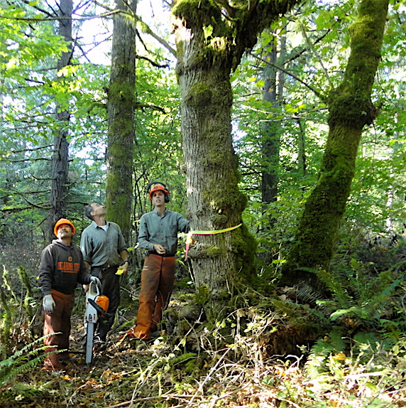 Sarah took Kristin out and she chose the tree she wanted, marking it with pink and green markers (not the usual Zena forest marking system!)