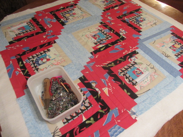 Surely one of the BEST EVER baby shower quilts! Love the photo of the fishtrap & its wonderful shadow, giving it additional power & mystery. Great installation.