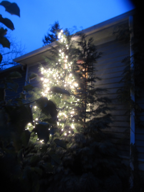 Back in 2012 at this time, I was getting ready for ankle surgery and being off my feet for three months.  R put lights on the trees outside the bedroom window