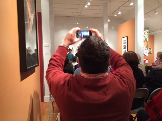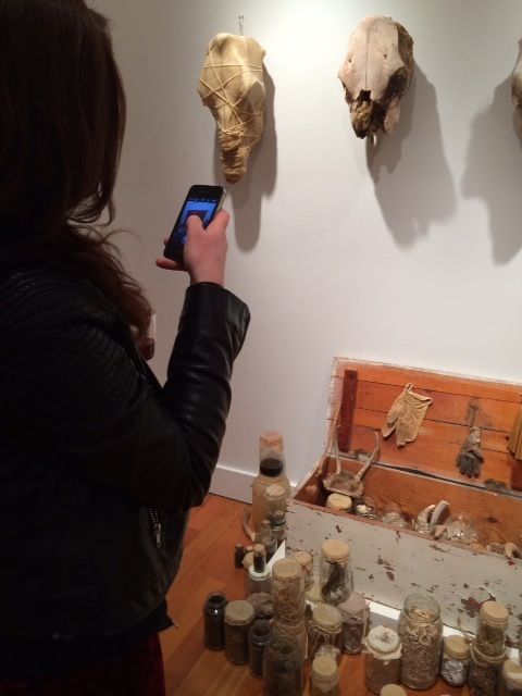 Opening tonight of a nice group show at SAA’s A.N.Bush gallery featuring various spins on the theme “Cabinet of Curiosities”…drawings, cabinets of stuff, photos, stuffed animals (taxidermy is very big these days) 9 or 10 artists, nice work, too much to meaningfully photograph. Better go take a look as it’s up until February 22. What caught my eye tonight was how many people WERE photographing the work…and each other!