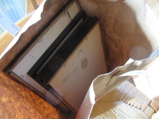 But in the bottom of the closet was the thing I’ve come to dread around here…a sack of framed things (or worse yet, a BOX of framed things)…
