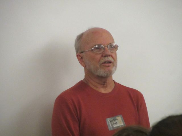 The audience was mostly students, of a variety of ages, and they were pretty interested when Bill Park described beginning to paint at age 41 because it was the one thing he really loved doing, and he realized he’d have regrets if he didn’t do it. He began the next day and never looked back. Most of his paintings in the show were of Fred, a man he’s been painting every Friday for 7 years…fascinating…(difficult for some students who had seen Park’s landscapes on line and wondered why he chose “difficult” subjects…). The paintings are full of energy and beautiful paint…