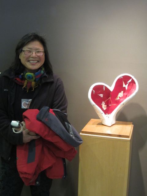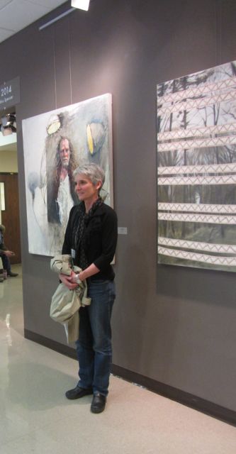 I went to Linn Benton Community College in Albany the other day to the opening of their annual invitational show. Each faculty member invites the artist of their choice to participate. Kristin Kuhns (Salem), William Park (Portland), and Cynthia Spencer (Corvallis) were all going to be there talking about their work…and I really like to hear artists talk about their work and their process. (The fourth person in the show, S Tellez, was out of town…). Left to right Bill Park, Kristin Kuhns, Cynthia Spencer: