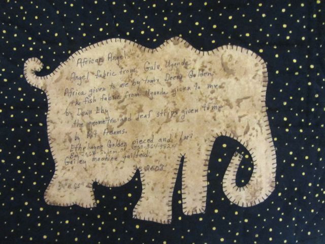This quilt is made of African fabric…three different pieces she traded and bartered for…