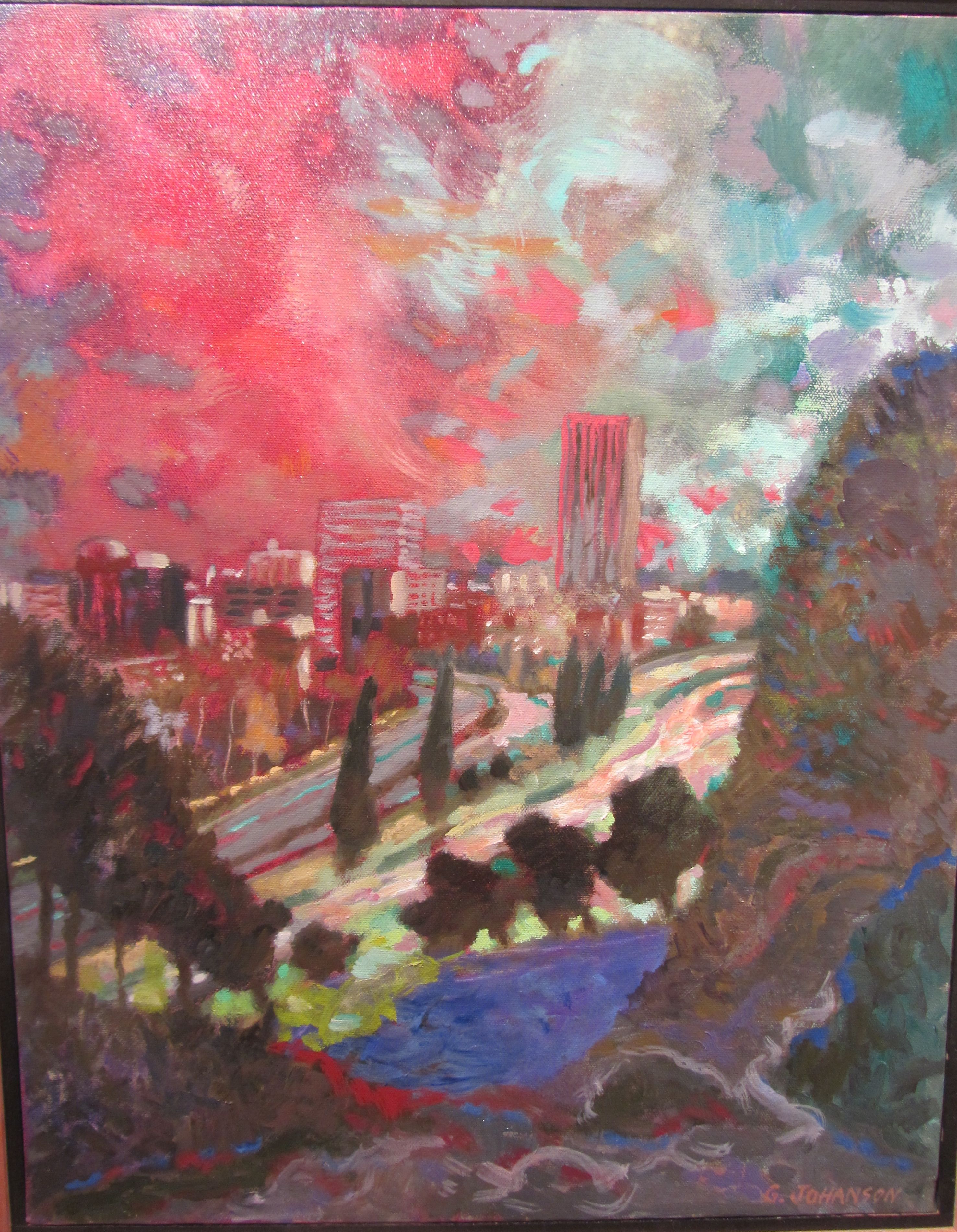 and these very painterly small George Johanson paintings from 2000…the Vista Bridge and a city view…