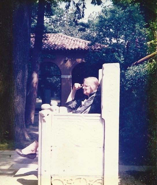 In the years following 1972 Roger led 10 student groups to Venice, each time with a stop in the welcome oasis of modernism…to visit my favorite Kandinsky…to see 20th century art in a 20th century setting. After Peggy Guggenheim’s death in 1979 we watched the furniture disappear, a huge glass addition built on the rear of the palazzo housing marginal art from Long Island and other American spots by artists not known to the general public. Then a gift shop appeared with the usual stuff. Then slowly the art started to disappear…the Kandinsky was gone on our last visit in 2005. Here are a couple of our “moments” in the garden over the years…