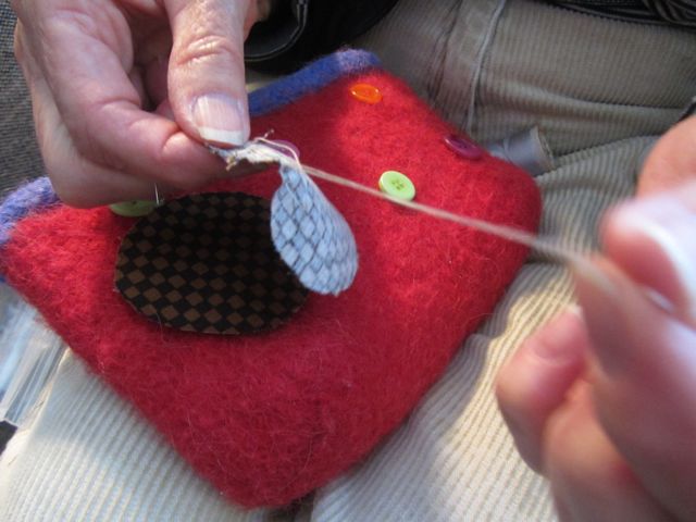Ethelwyne is making a cool applique tinker toy quilt and was working on a few of the circles…