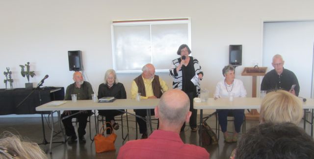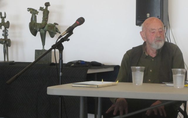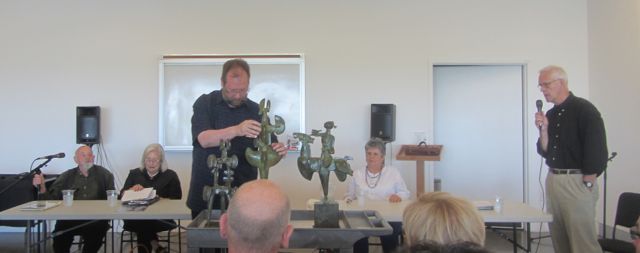 Roger was moderating a panel discussion of the work of sculptor James Lee Hansen, which has been on view at Maryhill Museum for a few months.  Panel members included historian Libby Dawson Farr, sculptor (and former student) Bruce Litteral and sculptor and former student M.J. Anderson.  There was a good crowd and the conversation was lively, and–in turns emotional, funny and informative.  Studio practice, World War II, guardians, teaching, friendship, mentor-ship, work ethic, inspiration…all topics of a fascinating 90 minutes.