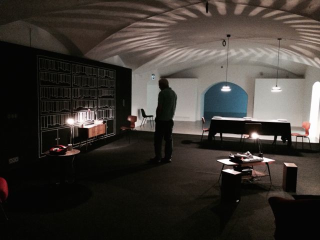 the ticket also was good for a photo show of contemporary photographers from around the globe on the subject of family.  There were still photos, video, and R’s favorite, an “environment” with a mid-century modern feel…