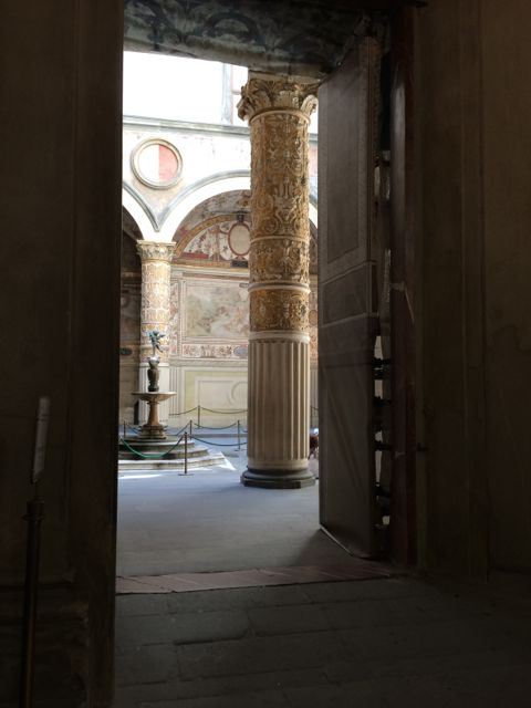 and then the Pollock show.  Well, you had to wind through all of the historic exhibits…including the Hall of 500 where it is thought there is a Leonardo fresco of the Battle of Anghiari under one of the Vasari paintings…