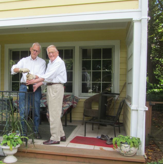 (and here R had to borrow Evan’s garden gloves to open the champagne…)
