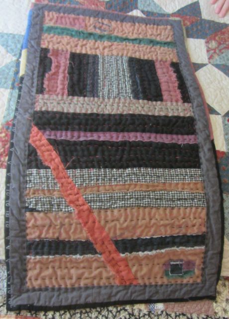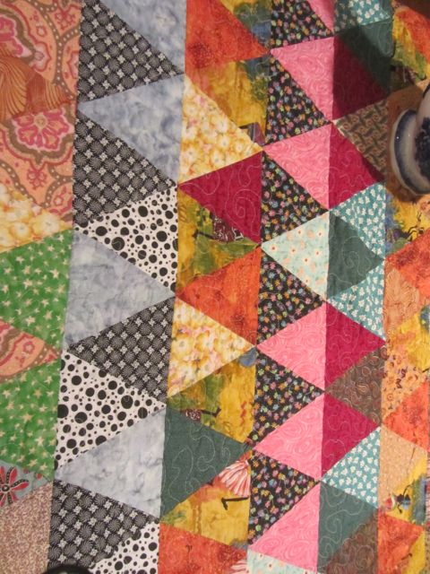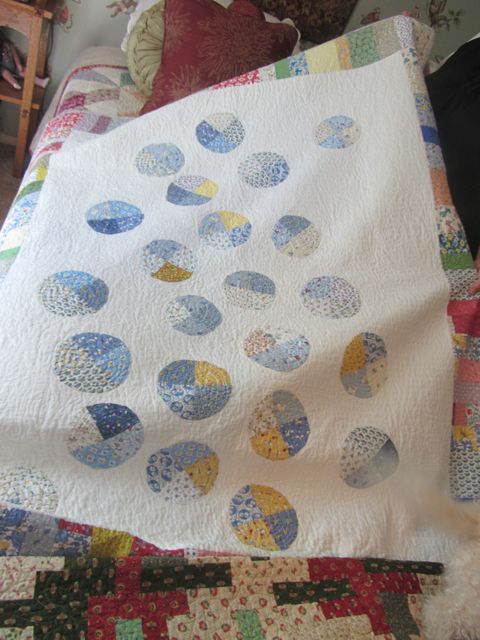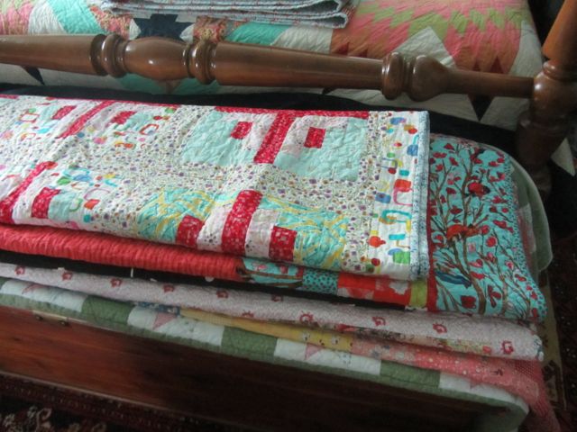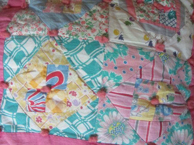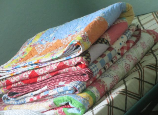 here’s her grandma’s quilt she like to curl up under and read, with amazing fabrics…