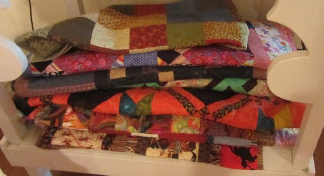 and I began to slowly realize that the woman is a dynamo.  She’s only been quilting about 10 years and she thinks she’s made 200+ quilts, giving away about 60.  We easily saw another 60 today…and every household activity seems to have a quilt…