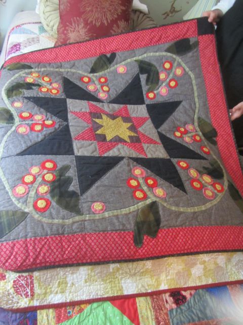 and I began to slowly realize that the woman is a dynamo. She’s only been quilting about 10 years and she thinks she’s made 200+ quilts, giving away about 60. We easily saw another 60 today…and every household activity seems to have a quilt…