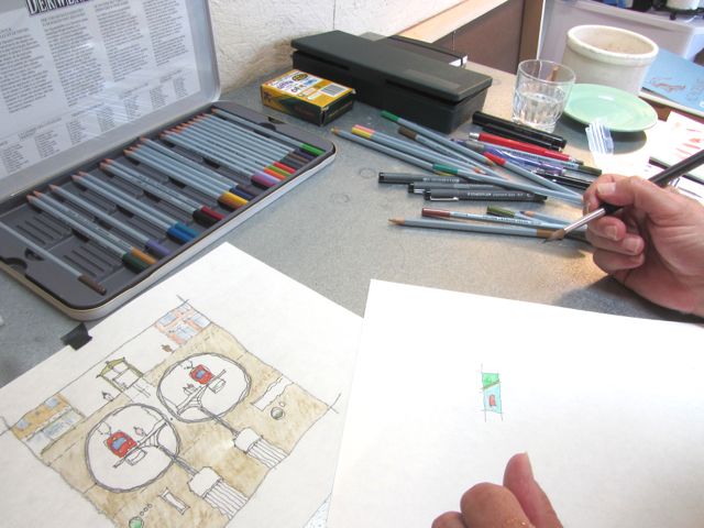 MEANWHILE…back in the studio my brother How was visiting from Rochester this week and we had a little studio time together.  His beginning idea was a city lexicon (does this remind you of anything…a quilt maybe??) in which he would turn all the letters into bridges…or subways…or something…