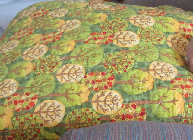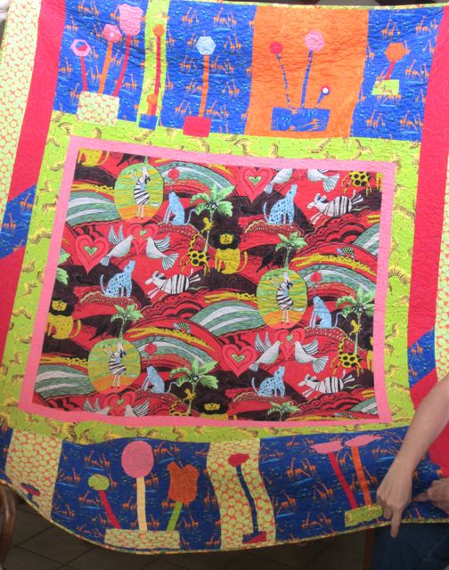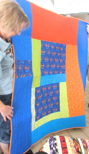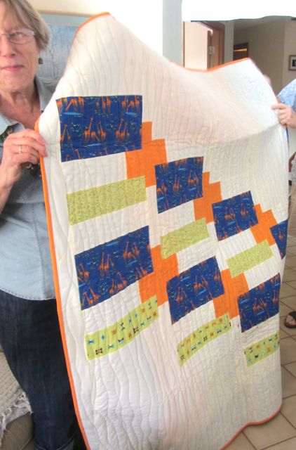 Linda and Kathleen had shared a piece of fabric in the mystery quilt challenge, and this was the reveal…here’s Linda’s version (front and back)
