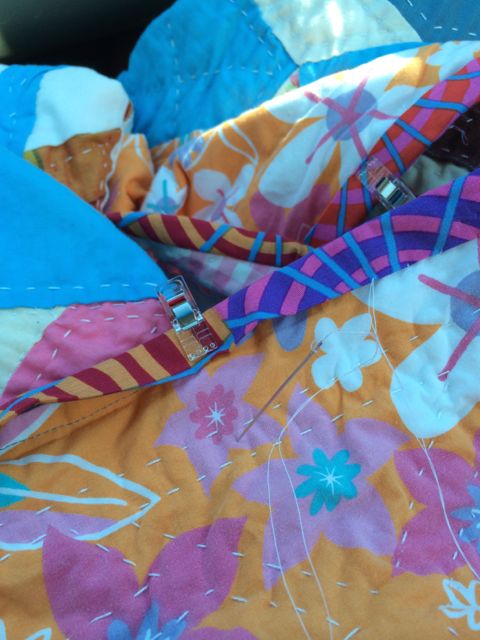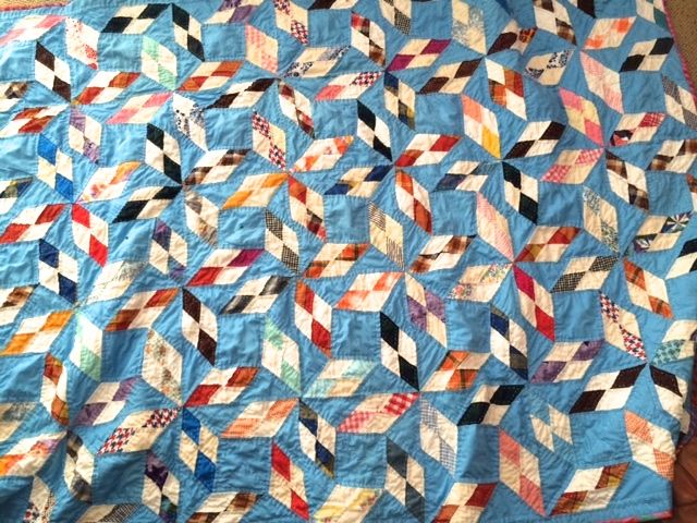 As my quilting “practice” takes up more space in my life, things shift and change a little (art is still number one though…new studio coming on line in October!).  I find I really like having a “vintage” quilt to work on…off and on…and this weekend I finished up the quilt-top I got in Tennessee a couple of years ago that I’ve been hand-quilting.  I decided to post it here because I noted it was in the background of sooo many photos…since I dragged it with me everywhere…thought it might be interesting to see where it’s been…