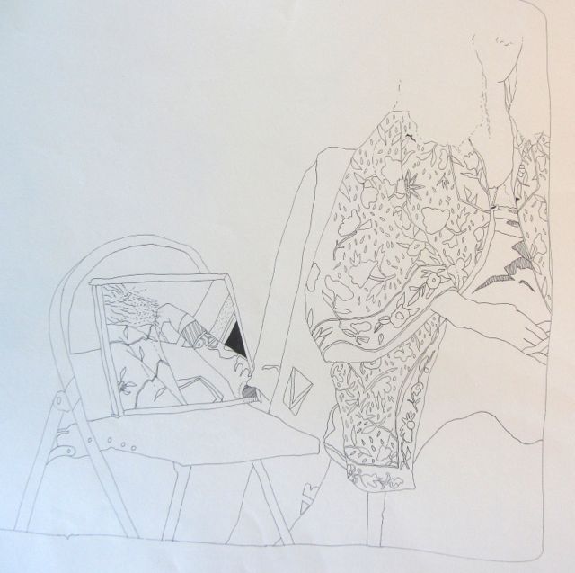 you have a lovely hand and eye, bonnie. and you bring surprising tidbits peripheral to the focal point to life…a bit of fabric fully rendered between a model’s legs, a patterned scarf draped over shoulders, a picture propped on a chair. impossible to choose favs, but i love #10 the baby with the big yawn or cry mouth, #34 the ashcan with its rich shadow, #38 the enigmatic scene with two women, rich in possible interpretations, #50 the london door with reflections all rendered with graceful, effortless strokes, and finally #56 the clock with its reflection of your hand at work. san