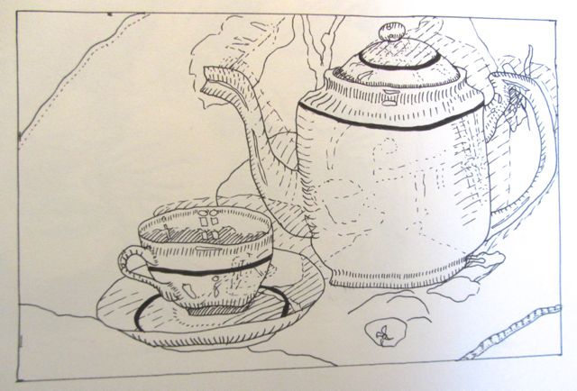 I really like the tea cup and kettle sketch! Has rustic appeal .